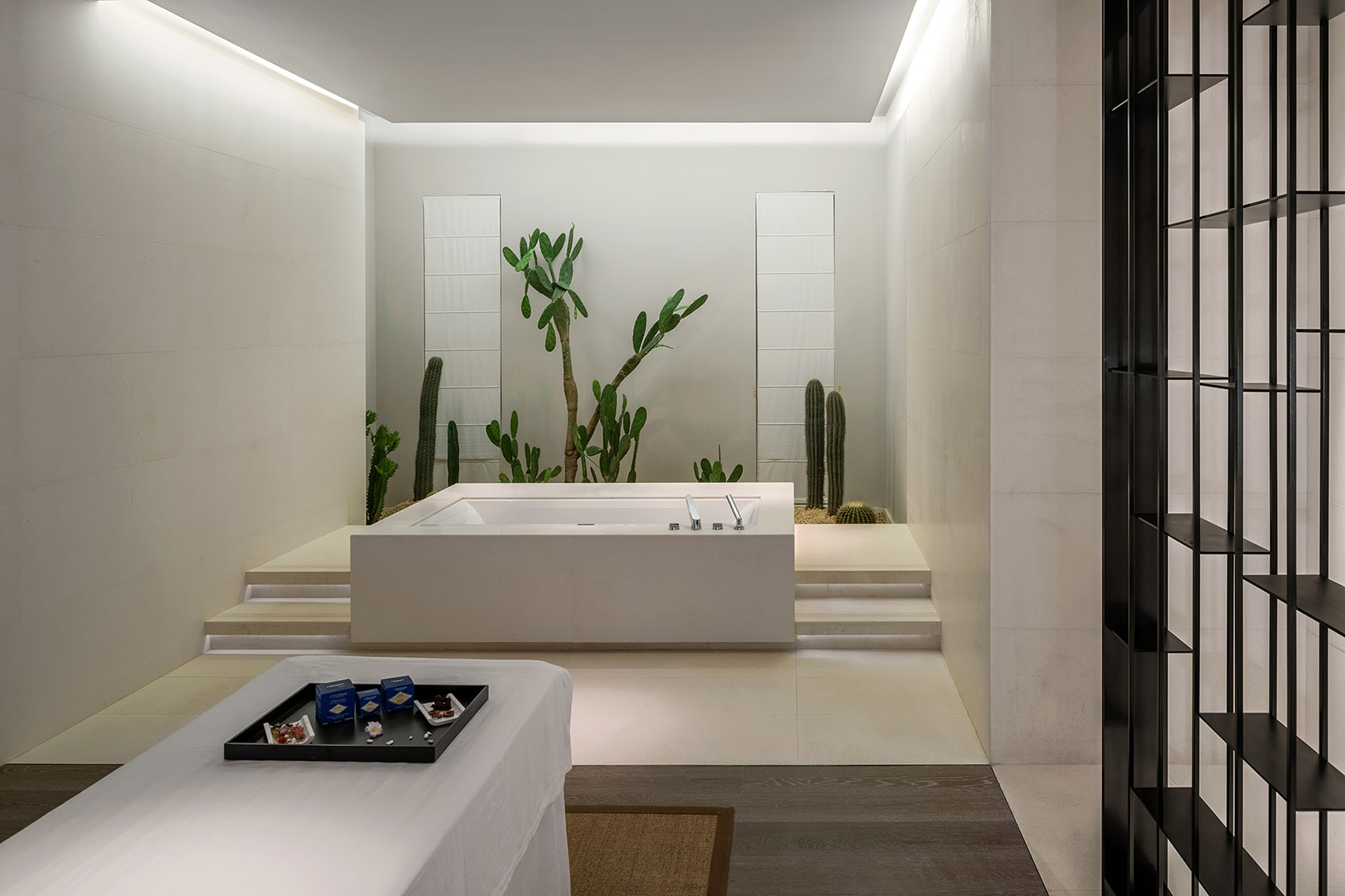 沉稳风雅的东方情境下依然有着法式经典的大块白色与黑色,家具和装饰细节则保持了岭南特色:将岭南民居中的“满洲窗”作为中式客房灵感,空间主要选用浅色木饰面、天然麻料与水墨大理石地铺石材的搭配。床背影布来源于当地传统的“香云纱”,房间内软装饰品如木雕、砖雕、陶瓷等以岭南民间工艺打造。