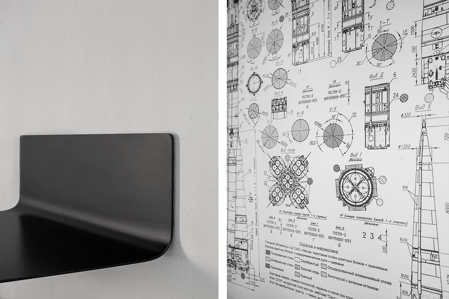 FOODOO内部极简的室内设计包括三组主题设计作品。第1组:联盟号(Soyuz)是一个三段式中型运载火箭,属于R-7系列。这个火箭是为联盟型载人航天器和Cosmos系列自动航天器以恒定轨道倾角发射到地球圆形轨道而设计的。