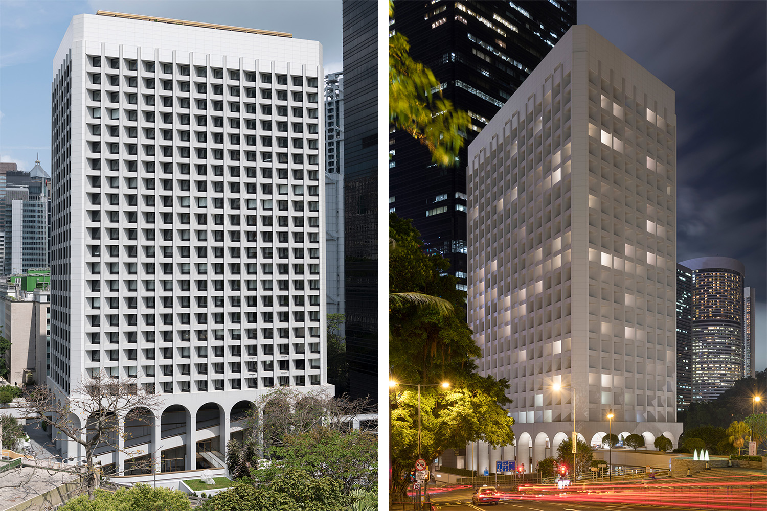 The Murray酒店位于城市中央商务区的南部边缘。该建筑最初建于1969年,曾被用作政府总部,但现在拥有336间豪华客房,一个屋顶酒吧,以及餐厅和活动场所。对于重新设计,这种做法决定保持建筑独特的网格白色外观,其中有凹陷的方形窗户,这些最初被包含在设计中,作为阻止香港亚热带气候的强烈阳光的一种方式。位于酒店基地的一系列四层拱门也被保留下来,被车辆坡道和高架通道拦截,可通往内部。两种元素均采用铂金不锈钢包覆。