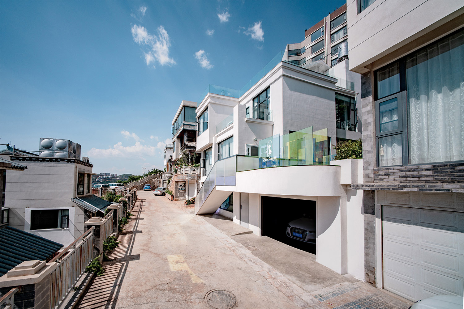 房子原结构地上三层,地下一层后半部分嵌入山体,一层有入户庭院,二层二层以上有海景,三层有景观露台。整个住宅区内的建筑风格较为凌乱,沿街可见白族式的屋檐、现代的大开窗,传统中式坡顶等各种风格的元素。