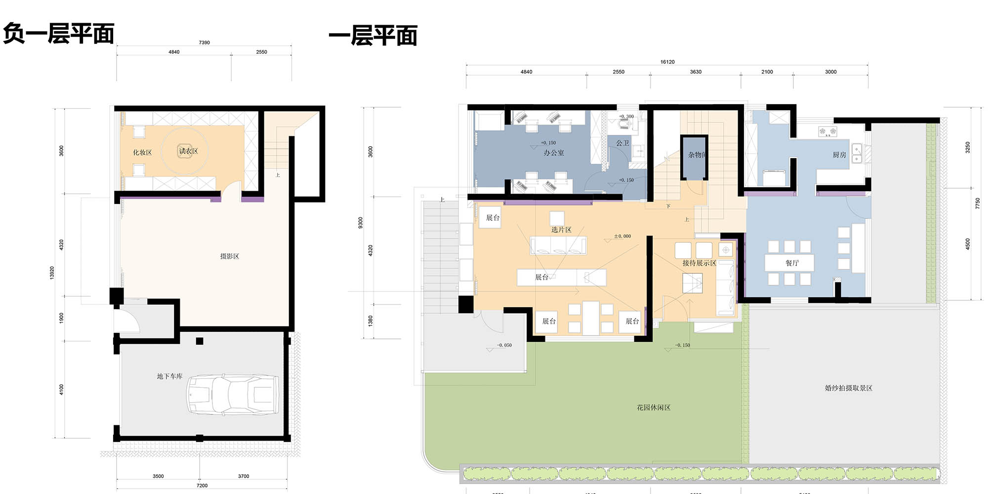 于是设计团队开始反思:传统的婚纱摄影印象中总是盛大的场面,堆砌式的布景常常会让我们忘记主角到底是新人还是景色。基于业主的需求重新定义一种婚纱摄影工作室,成了我们最初的目标,要干净利落,成为衬托新人最好的背景。