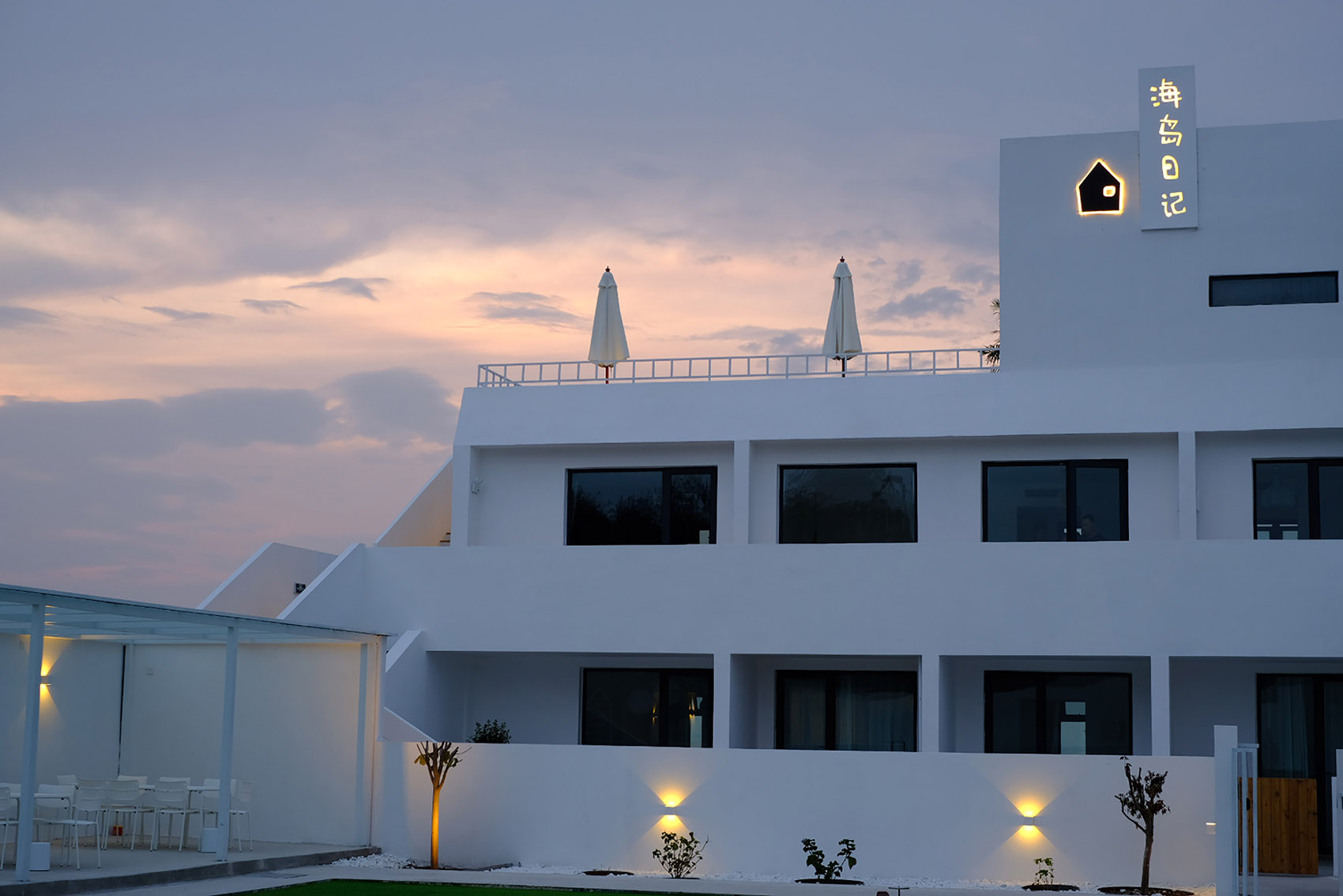海岛日记位于烟台养马岛后海边,烟台是一座临海的丘陵地貌小城,山丘起伏和缓,海岸线蜿蜒绵长。四季分明,春、夏、秋三季蔬果盈盛。冬天白雪皑皑,层云连绵。在这样美好的城市,我们想设计这样一间民宿,在意每一个人的到来,在意自然而然的生活本态,有五味杂陈的人生交响曲,有温情而平淡的生活记录,无论是阳光下,夜空里,蝉鸣时,浪涛中,都可以安然自处,可以容纳身心。