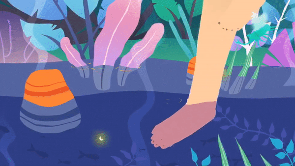 月光滩涂(换鞋区):月光下的滩涂是梦幻和诗意的场景。一方面用曲线型的半围闭座位进行视线阻挡,缓解公共区域换鞋的尴尬感受;另一方面通过氛围的渲染对消费者发出预告,提示即将到来的足浴和SPA体验。