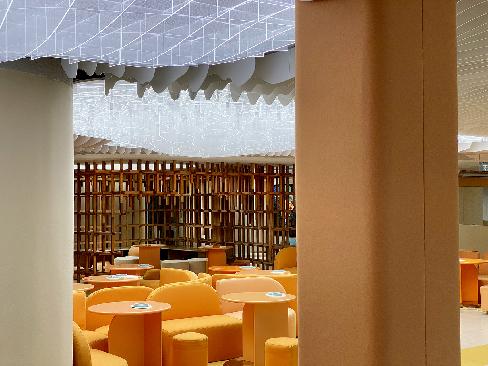 首层空间被流动的曲线覆盖,开放的退台式的阶梯座椅提供一个适宜互动的环境,也让访客渐渐从城市匆忙的环境中抽身,缓慢进入一个激发想象力的空间。