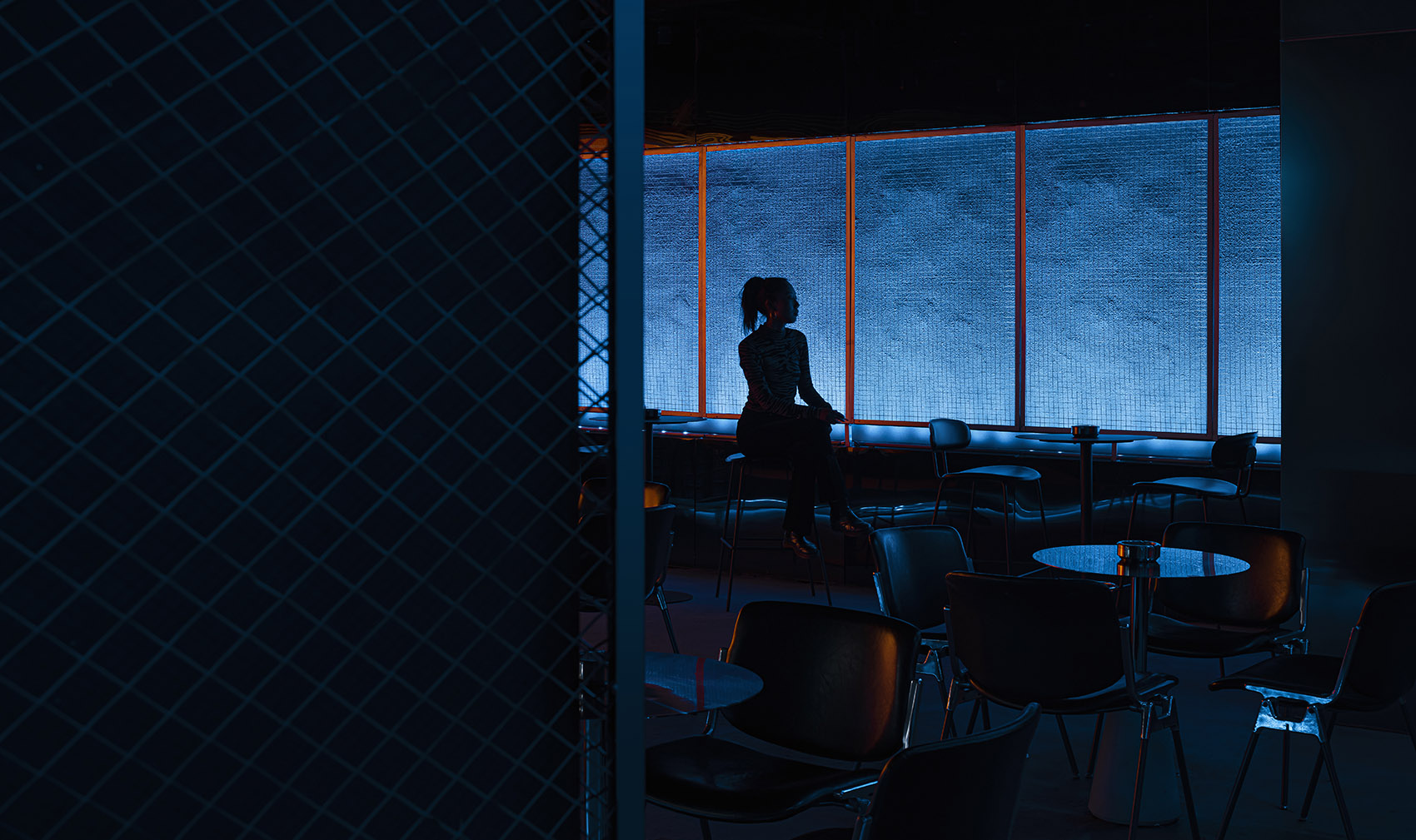 整个空间在营业过程中无主光源,设计团队希望让人身在其中,就能品悟到蕴藏于200平空间散发的朦胧感,灵动若隐若现,越夜越美……氛围灯光映衬下的人来人往,觥筹交错形成剪影,加上不同高低的座位,人就在空间中成了景,层次分明。我们理解嘻哈文化应当是一种真实开放的态度。所以纵然空间中的座位形势高高低低,但总体是开放的,座位也是聚集的,人与人之间的距离是近的。