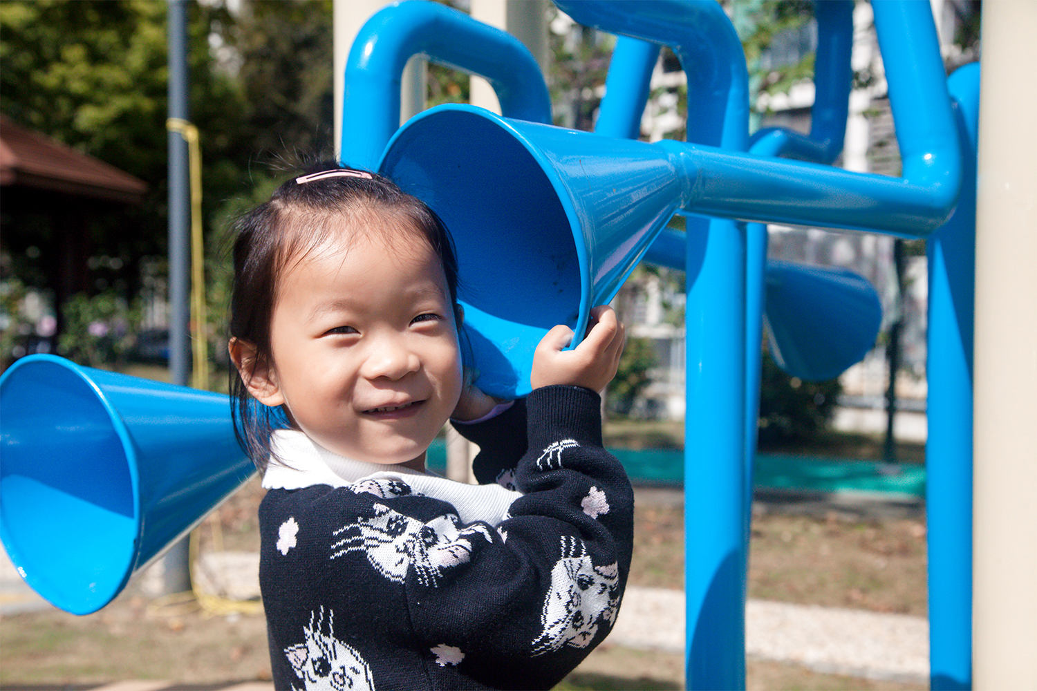 儿童娱乐不仅专注于视觉上的效果,同时强调了关于0-6岁儿童听觉的活动训练,合理的高度设置以及听筒布局,能同时让多个孩童沉浸于此项活动中。