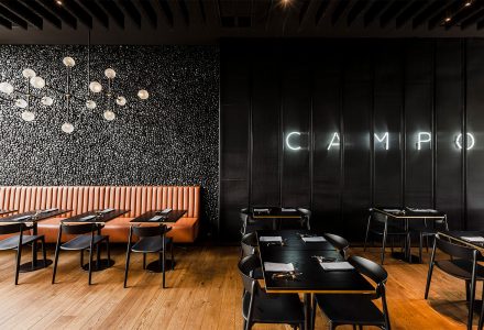 第三处空间位于餐厅后部,内部装饰采用一系列与自然主题贴合的合成软木与水磨石,两者相互堆砌的同时完美地将光源隐藏,进一步强化视觉上的空间深度,带来另一种不同的空间体验。