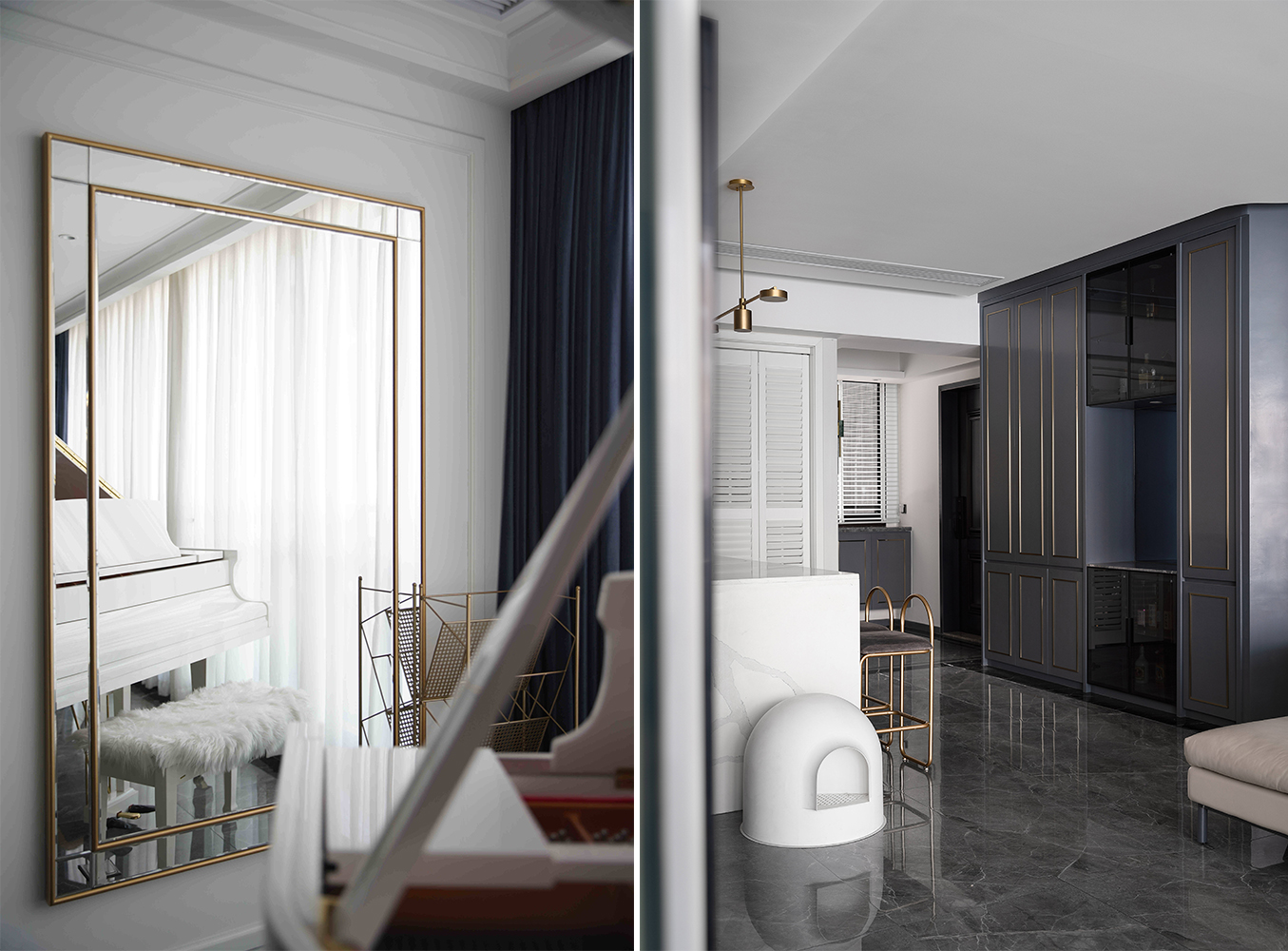 “我有一个非常清晰的愿景,我希望空间能被设计得意料之外的开阔,并带有MonAmi独有的专属气质。我试着让MonAmi走出她的舒适区,但仍然保留着她与生俱来有的倔强与骄傲。”林彦先生说。开放式西厨接连着阳光客餐厅与练琴房,形成一个完整空间,这是MonAmi与挚友在一起共享最多的空间,林彦先生希望这个空间可以记载他们的日常,而不是被功能框架所束缚,在我们的设计中这是一个“善变”的空间,我们叫它Life board,可随意调整空间的机能形式,毕竟MonAmi太爱朋友亦乐于分享。