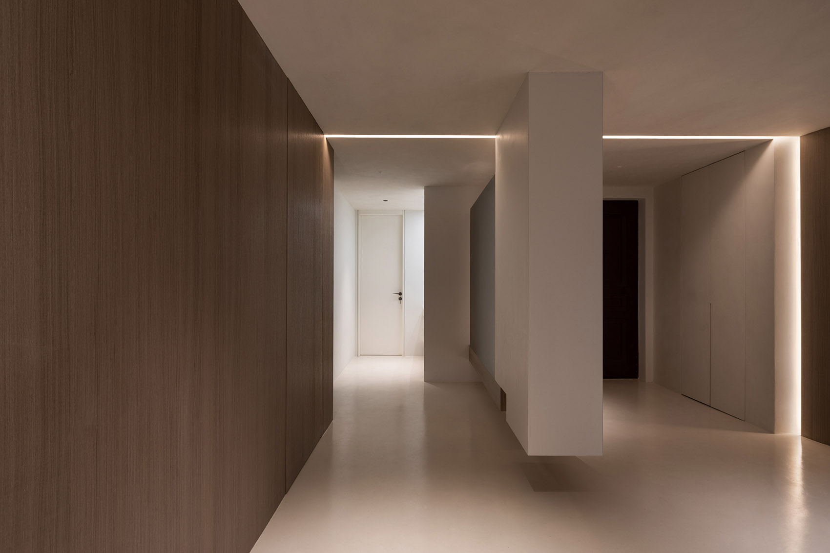 视觉上的开阔,光晕染的每个角落,让人随心沉浸到自我的空间当中。细致而不凡的气质彰显出沉稳风雅的空间艺术形态。素色主色调衍生出纯粹且过目难忘的意境,点缀的木色使空间如谦谦君子一般,温润如玉。置其间漫步随行,气定神闲,禀气而生。