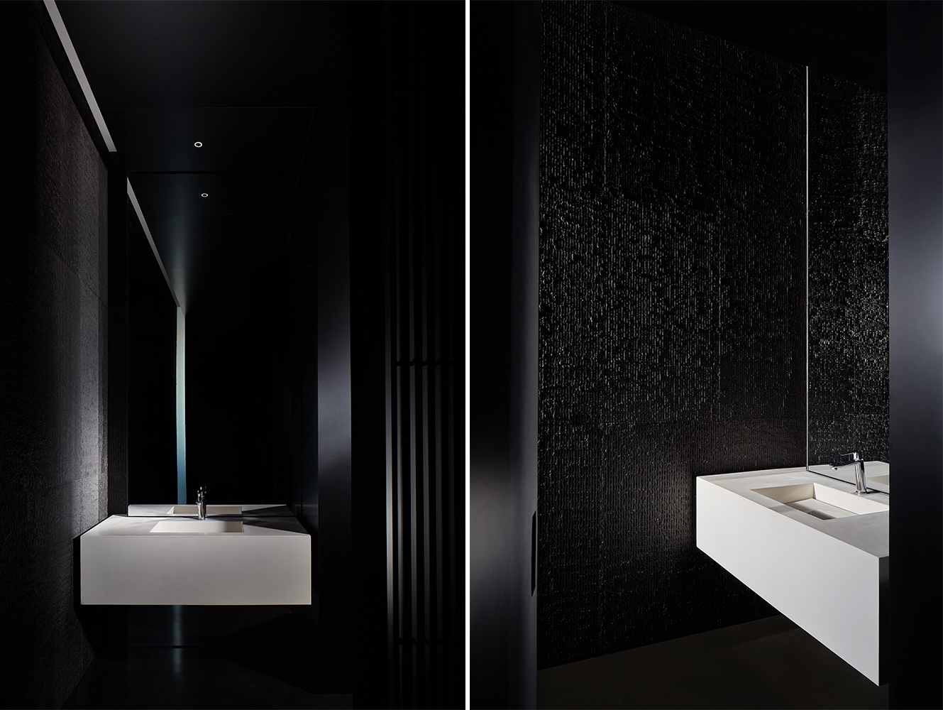 卫生间遵循着材料、比例与秩序,利落从简。粗粝的肌理与光滑的表面,配合光线映衬,强化其质感,也进一步凸显层次。