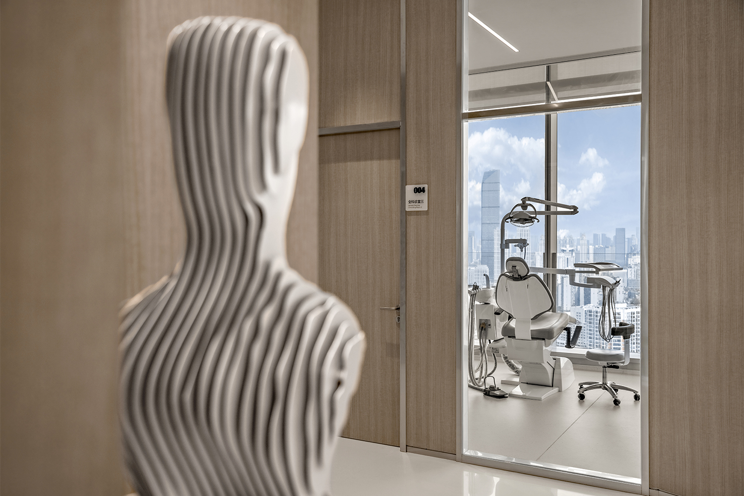 古希腊时期,名医希波克拉底和亚里士多德都曾研究过如何排齐牙齿,21世纪人们已经将数字化交织精准正畸广泛应用于全球,而医疗空间也在这一漫长过程中经历了颠覆入微的变化。现代医疗空间除回应医疗的演化融合,更多地被期待注入友好性——医疗空间的安全感、尊重感和能否令患者松弛舒适减少恐惧,将在很长一段时间考验设计师和医疗工作者。当走进诊所的患者不再蹙眉屏息,不再惴惴不安,而是自在穿梭于厅堂廊道,享受窗外云上风景,耐心等候一次专业亲切的诊疗。那么在漫长的问诊史中,我们势必又向前了一步。