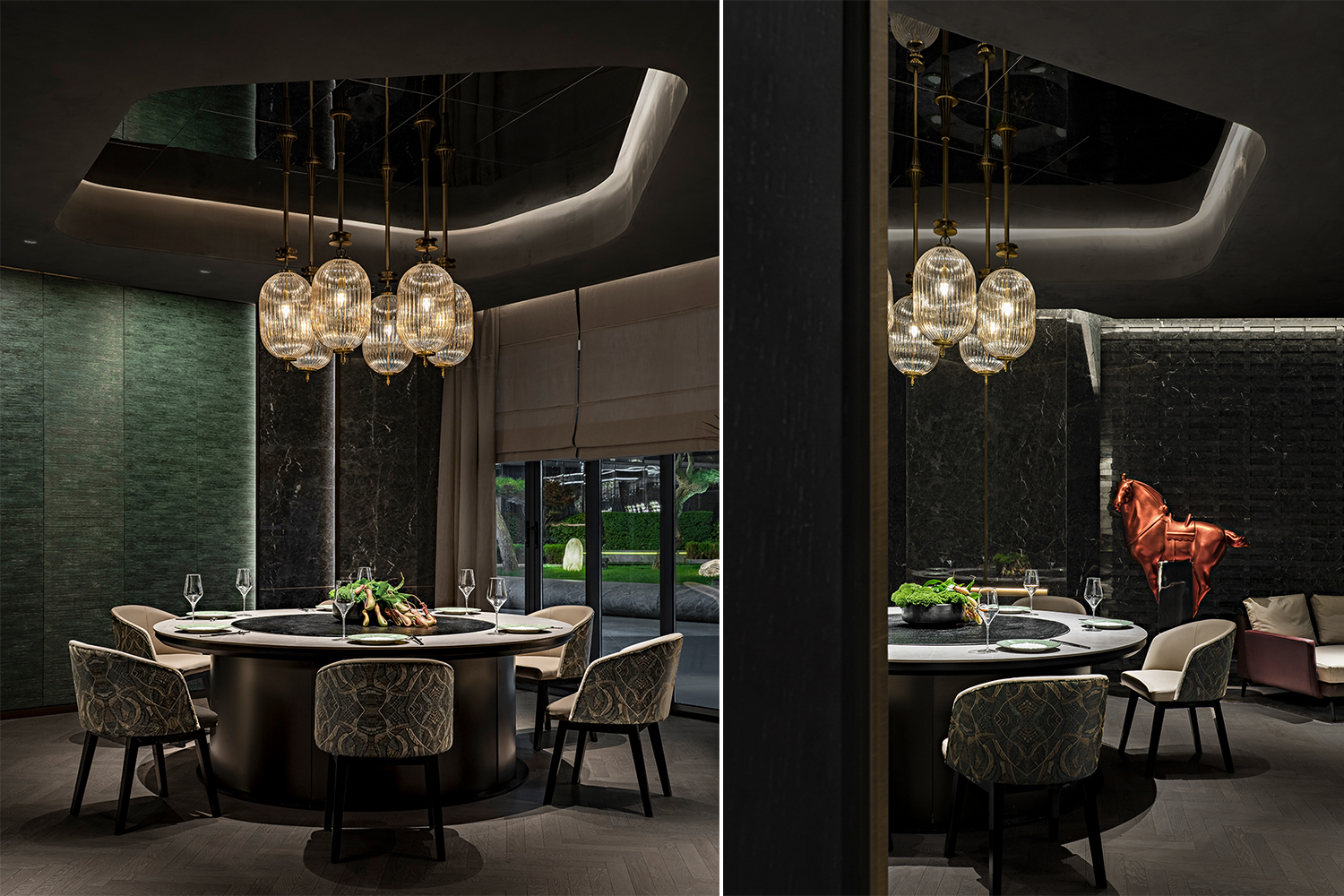 进入VIP室,灯光低垂、光影落下,此时,鲜衣怒马的现代雕塑与转角处的大唐仕女明了点题,千百年岁月远道而来,被鲜活的当下着色一番,轰然历史的不堪其重已被倔强的人们化为智慧、喜悦、艺术与生生不息的烟火人间。