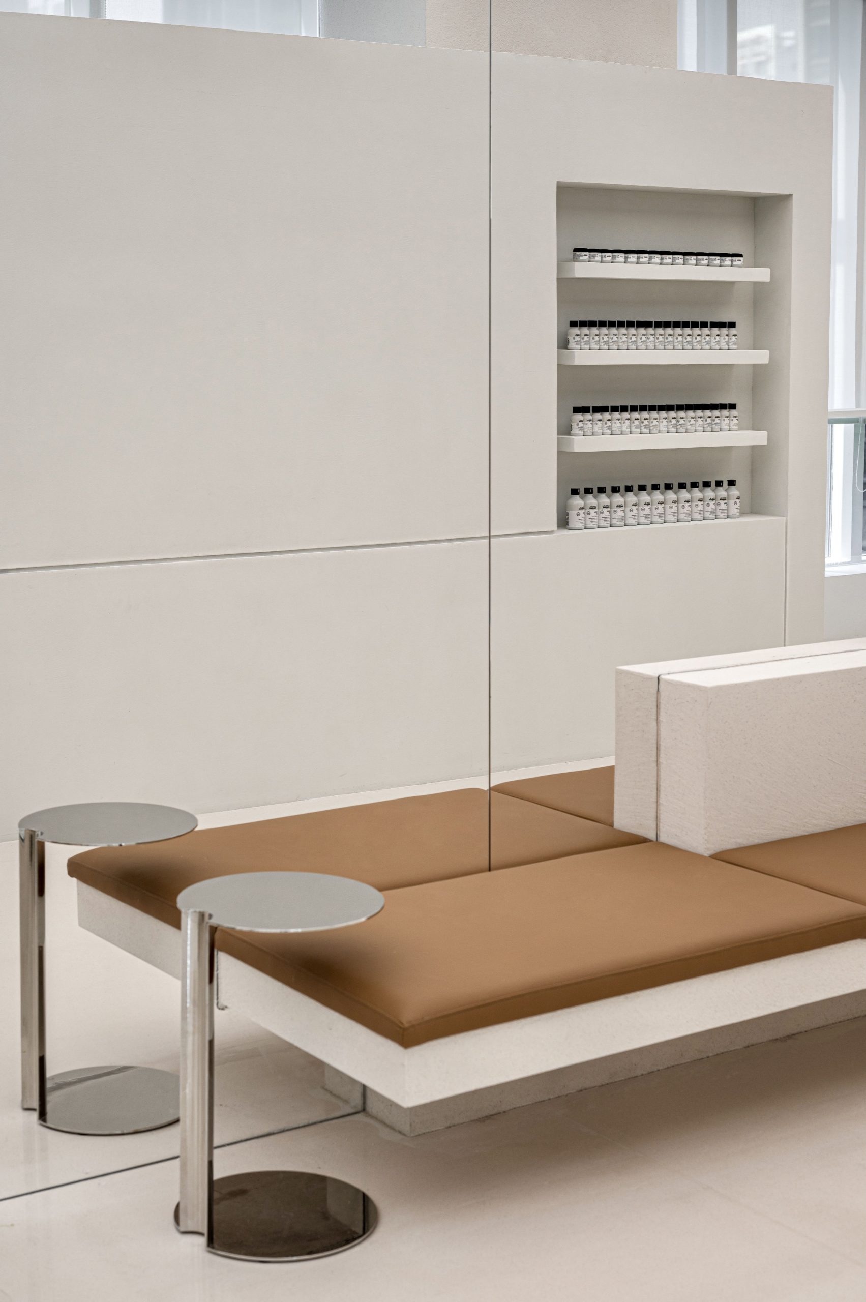 和空间视觉融为一体的镜子,拉伸空间视觉并且各自独立分开,彰显品牌高端化的同时,也能让顾客感受到个人空间的存在。
