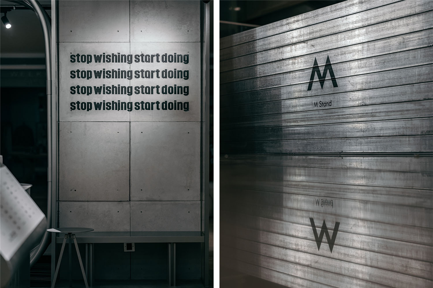 在诠释M Stand的“一店一设计”空间美学的同时,尚洋结合灯光、极简灰调与金属质感,保留建筑最初的自然因子,同时试图通过由内到外的视觉延伸,打破原空间的平静,突出场所的独特性。