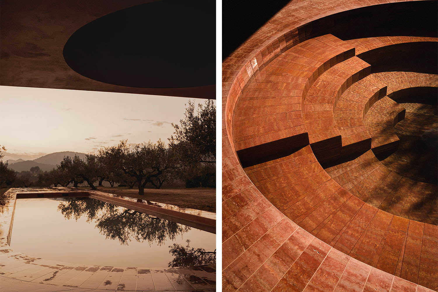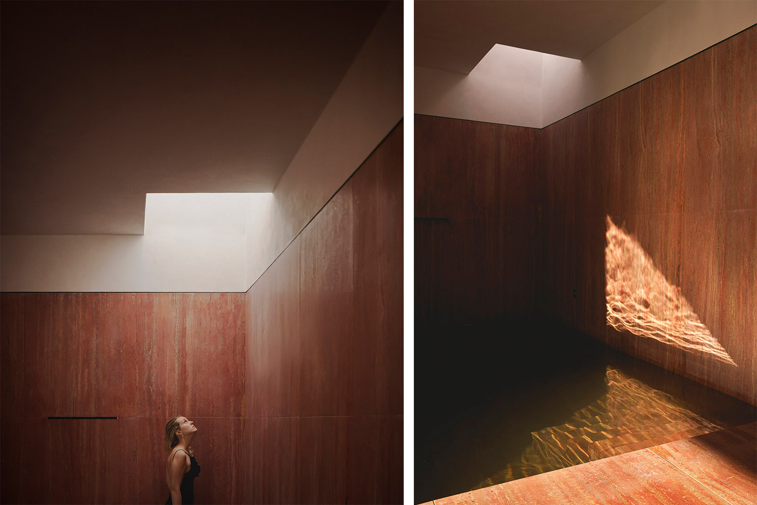 水元素在整个住宅中有着很强的存在感。露天游泳池的一端是半圆形,部分被拱顶覆盖,从凉廊一直伸向橄榄树林所在的花园。室内游泳池配备了温泉、淋浴间、大尺寸窗户以及户外淋浴区,为住宅带来强烈而丰富的体验。两个游泳池都带有加热功能,可在一年四季使用。