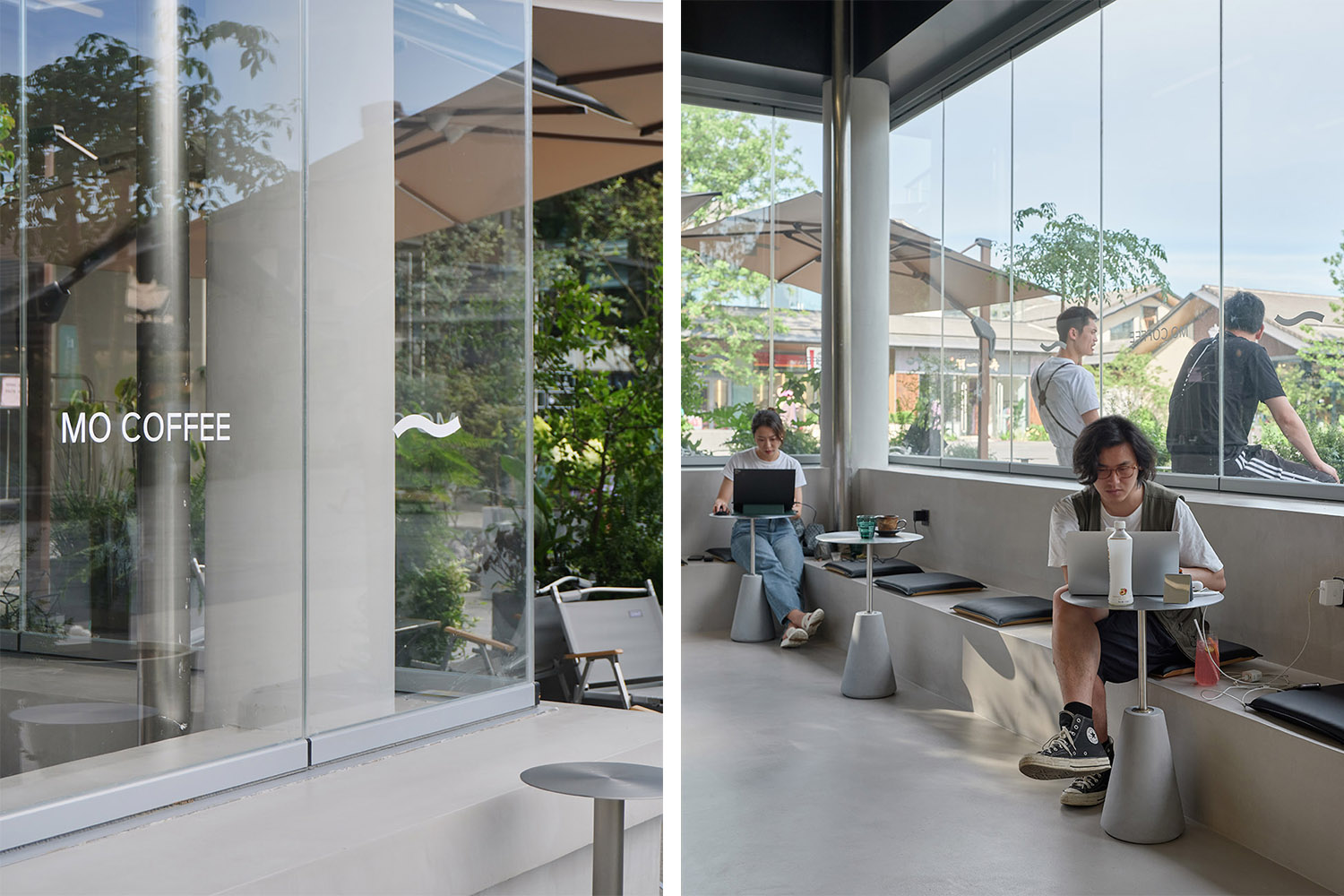 三年前,我们在业主办公室置入迷你咖啡吧,流动的镜面不锈钢激活了核心筒区域。专业咖啡师不仅为同事们制做咖啡,也总是会接到同园区其他公司的“订单”。友邻们纷纷组团来打卡“办公室咖啡”,也带着好奇心围观设计公司的日常。“办公室咖啡”因此从“福利”变成了“副业”,也让业主看到了建筑对话大众的另一种可能。因此,从办公室到城市的这一步,就这样在建筑圈与咖啡圈双卷的氛围下逆流而上。