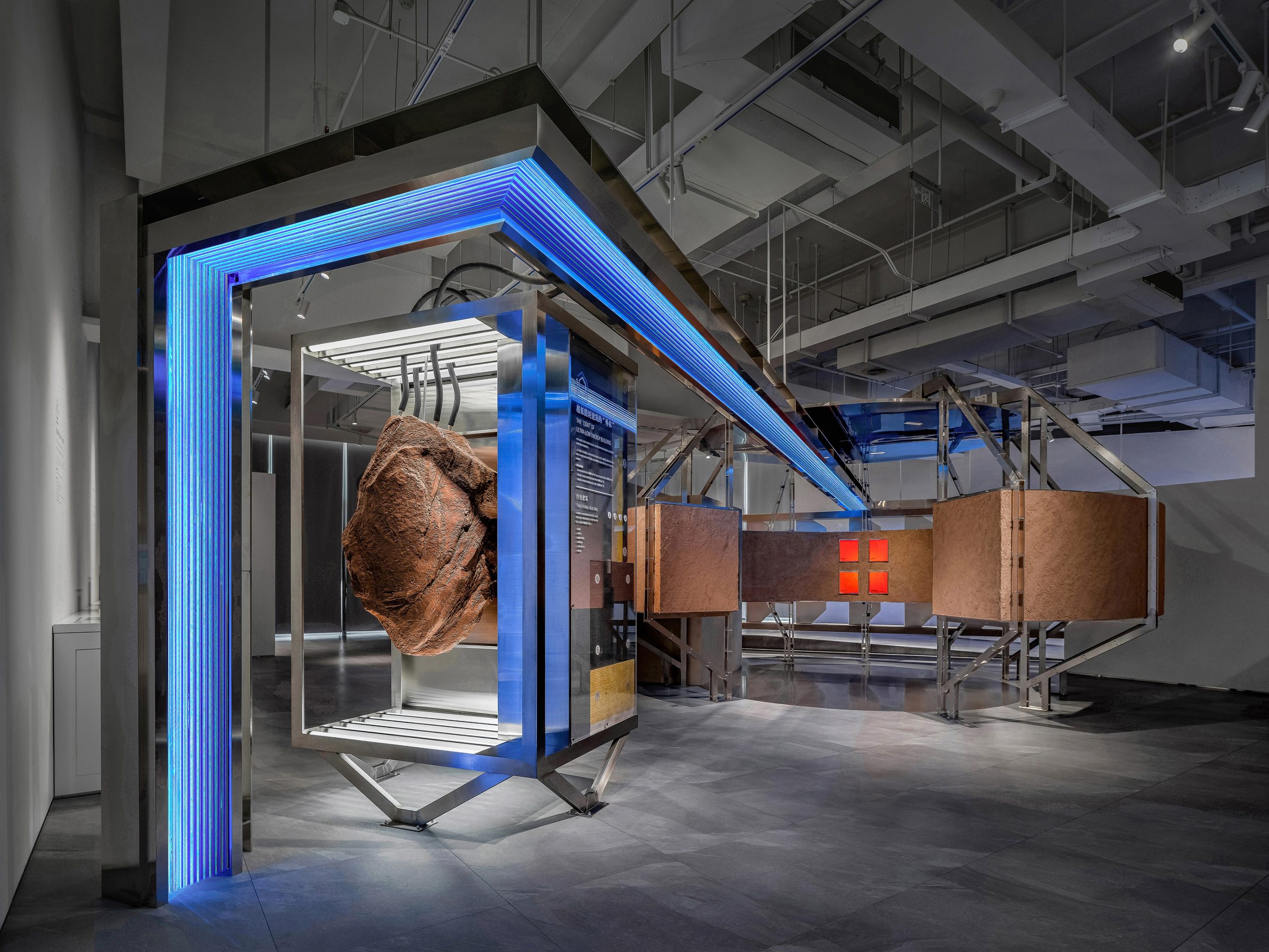 为了改变,我们忽视自然;为了延续,我们回望自然;科技推动的居住的迭代,最终以人与自然融合作为回归,一块红土装置里的微量元素却是诱发变化的关键,解析、转译它,蓝色的能量链接起源与未来。