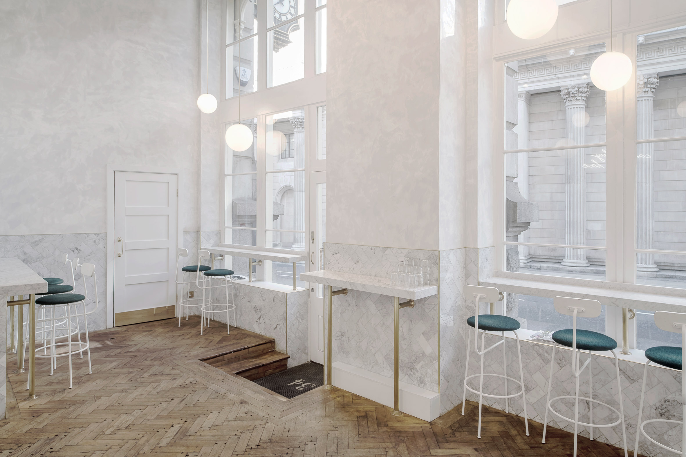 这个项目给了我们一个真正独特的位置,在一个伦敦最知名的建筑宝藏,Biasol说:“这是如此的重要,以至于我们的方法和审美尊重皇家交易所的历史。” 建筑已经和重建两次毁于一场大火。空间现在成为GRIND & Co的化身。
