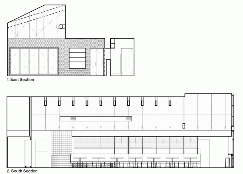 吧台与钢架形成分区,顾客可以透过钢架看到对面可换置的餐牌点其他的食物。