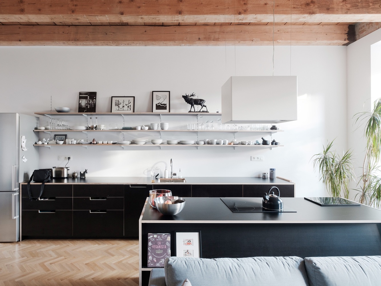 该公寓场地前身为一个于1719年修建的修道院。20世纪中叶,它被改造成了一个公寓住宅。项目致力于将充满各种干扰层的空间转换成一个供年轻夫妇居住使用的多功能住宅。我们决定在一个合理的预算前提下,通过暴漏美丽的原始旧结构。在一个较短的设计过程中,聚焦于主要的起居室。
