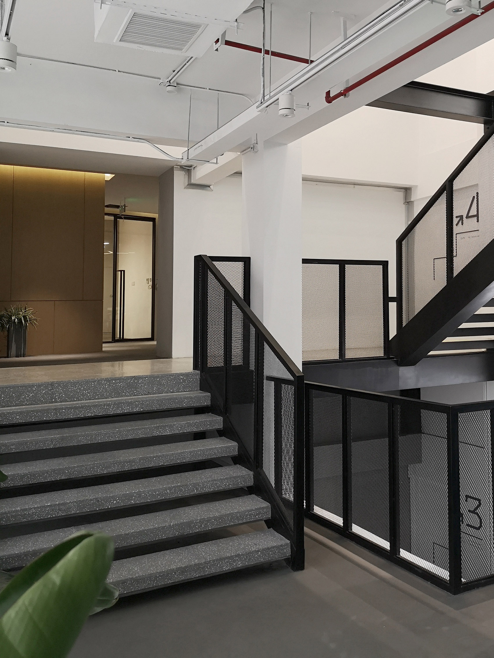 五角场创新创业学院是由一个拥有独立庭院的老厂房改造而成共享办公空间,身躯经历了风雨沧桑,建筑本身就体现着“雄关漫道真如铁,而今迈步从头越”的创业精神,以卓越不凡的姿态拥抱当下创新办公新模式。结合业主的功能需求以及共享办公的特质,设计师在不同楼层穿插设置了办公、会议、展示、路演、健身、休闲等空间机能,空间之间相对独立而又彼此联系,以满足和适应各种群体在不同时段的使用需求。